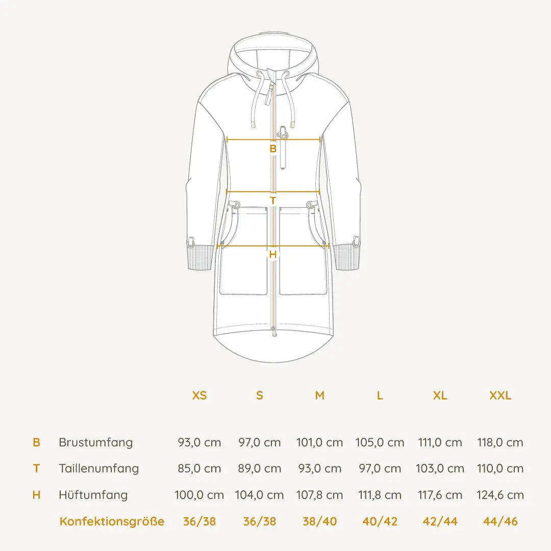 Für einen bequemen Sitz empfehlen wir dir den Mantel in deiner normalen Größe.